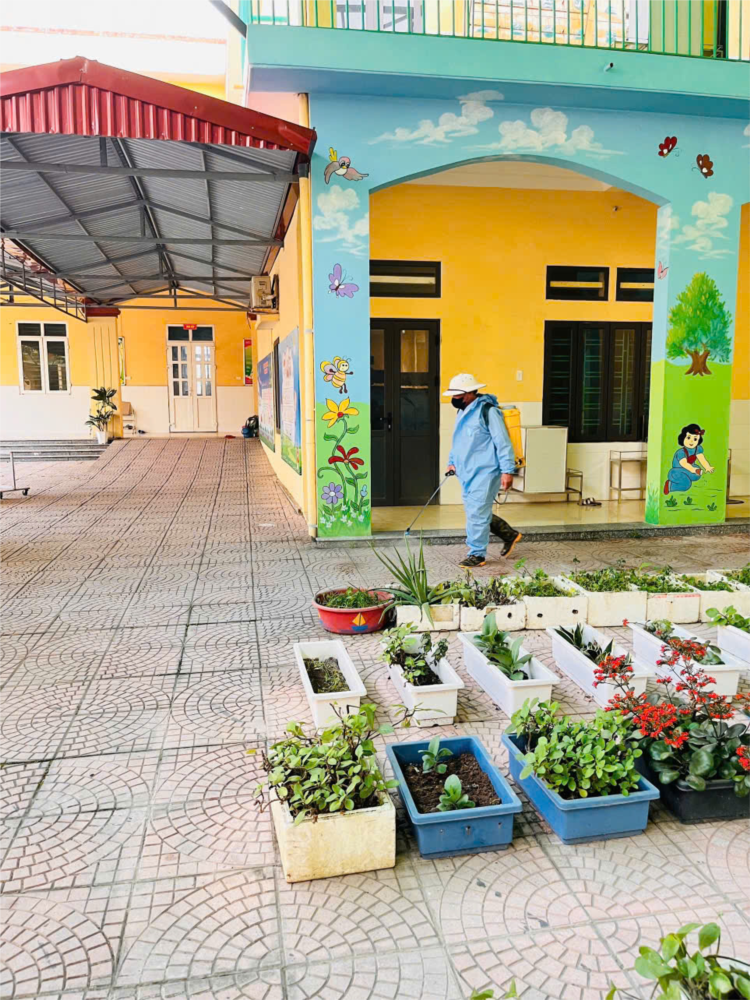 Nhận thức rõ nguy cơ lây lan của các bệnh truyền nhiễm thường gặp ở trẻ nhỏ như cúm mùa, tay chân miệng, viêm đường hô hấp…, nhà trường đã xây dựng kế hoạch phun khử khuẩn định kỳ và đột xuất tại toàn bộ khuôn viên trường học. Công tác này được thực hiện nghiêm túc, đúng quy trình, đảm bảo an toàn và hiệu quả.