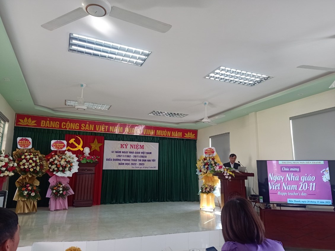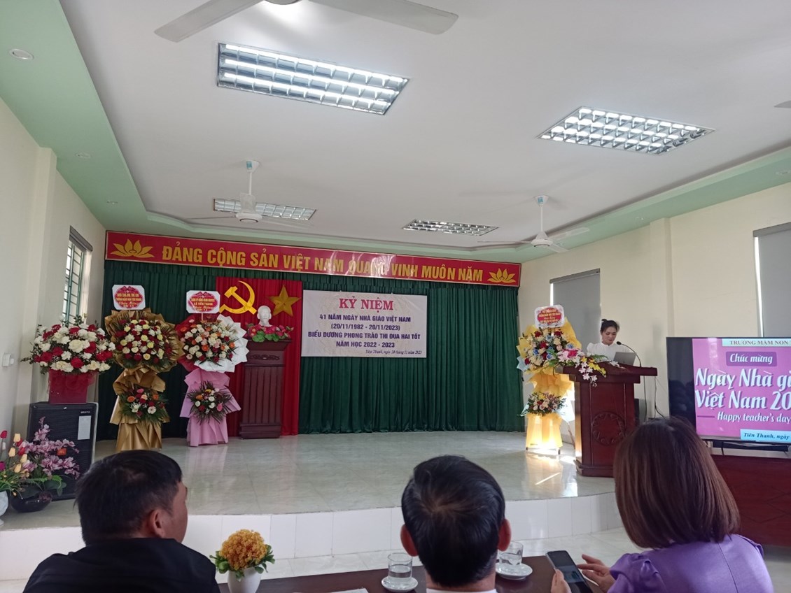 Tôn sư trọng đạo đã trở thành một truyền thống đạo lí của dân tộc Việt Nam. “Nhất tự vi sư, bán tự vi sư” - người Thầy tự xưa đến nay được toàn xã hội tôn vinh, ngưỡng mộ. Lễ kỷ niệm ngày Nhà giáo Việt Nam hàng năm là vừa dịp để tri ân công lao của những người gieo hạt thầm lặng vừa là dịp để thế hệ nhà giáo hôm nay soi mình, tự bồi dưỡng mà trưởng thành hơn trong sự nghiệp trồng người. Trong không khí vui mừng của cả nước hướng về ngày truyền thống của giáo dục Việt Nam; sáng ngày 20/11/2023, trường mầm non Tiên Thanh đã tổ chức Kỷ niệm 41 năm ngày nhà giáo Việt Nam (20/11/1982 -20/11/2023) để cùng ôn lại truyền thống tốt đẹp của nhà giáo Việt Nam nói chung. Đây cũng là dịp để nâng cao hơn nữa nhận thức về vinh dự và trách nhiệm của người giáo viên trong xã hội hiện nay.