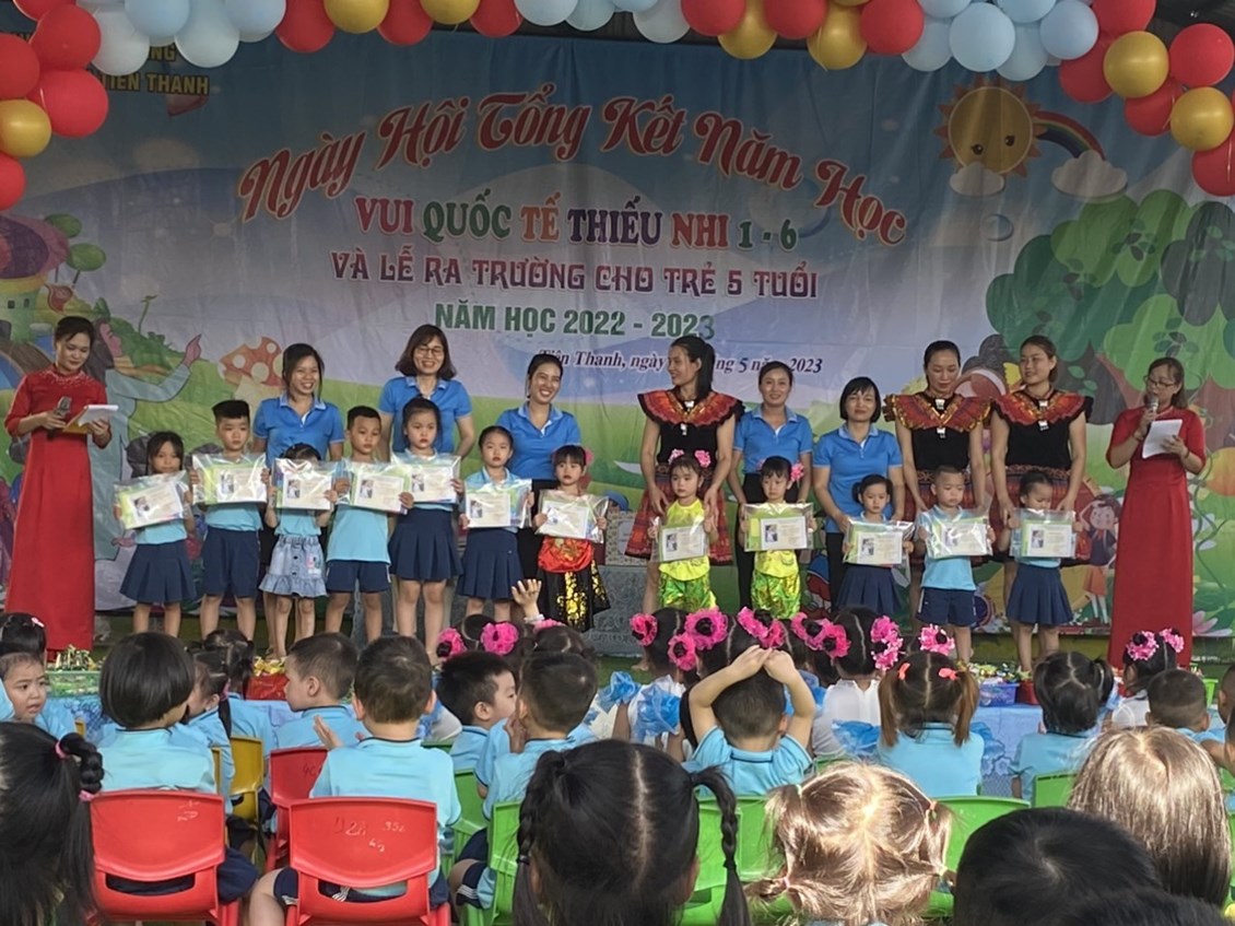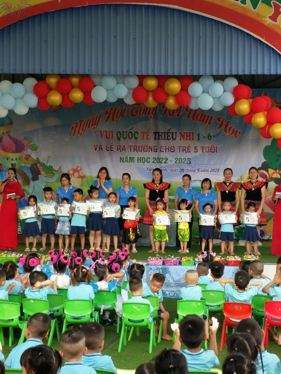 Ngày hội tổng kết hôm nay Nhà trường đã trao 86 phiếu hoàn thành Chương trình cho trẻ 5 tuổi và trao giấy khen cho 100% cho số trẻ toàn trường.