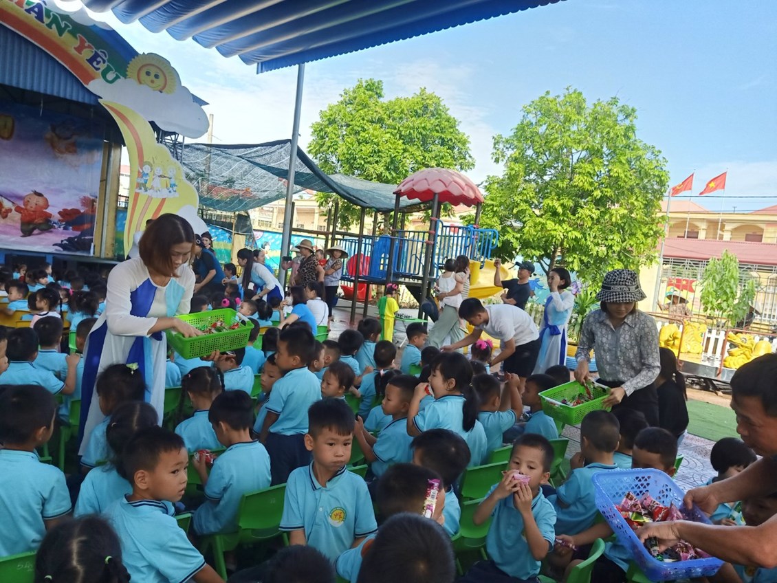 Năm nay cũng vậy, Tết trung thu 2023 trường Mầm non Tiên Thanh rất vinh dự được đón đoàn đại biểu của Đảng ủy- HĐND- UBND- UBMTTQ VN và các ban ngành đoàn thể xã Tiên Thanh, các bậc phụ huynh về dự và tặng quà động viên cho các cháu.