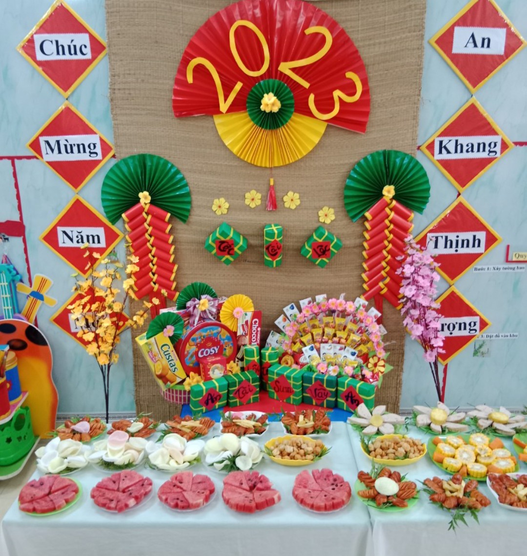 Để cho trẻ hiểu hết ý nghĩa của ngày tết Nguyên Đán - tết cổ truyền của dân tộc, các cô giáo, cô nuôi cùng các bậc phụ huynh trường mầm non Tiên Thanh chung tay tổ chức các hoạt động cho trẻ đón tết, chào xuân Quý Mão 2023. Chúc cho toàn thể cô trò đón một năm mới bình an, hạnh phúc và nhiều niềm vui, hạnh phúc khi tết đến xuân về. Niềm vui, hạnh phúc của các con là thành quả lớn nhất của cô và ba mẹ. Chúc các con thêm tuổi mới luôn bình an, mạnh khỏe, chăm ngoan, học giỏi.