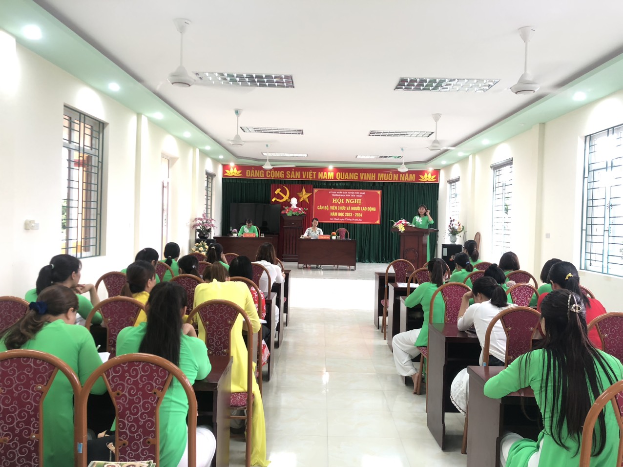 Được sự chỉ đạo của LĐLĐ huyện, PGD&ĐT huyện Tiên Lãng, sự nhất trí của Đảng ủy, HĐND-UBND xã Tiên Thanh, chi bộ nhà trường. Ngày 07/10/2023 BGH cùng với BCH công đoàn trường MN Tiên Thanh đã tổ chức “Hội nghị cán bộ, viên chức và người lao động năm học 2023-2024”. Với tinh thần khẩn trương, nghiêm túc và học hỏi, Hội nghị đã thành công tốt đẹp. Tập thể cán bộ quản lý, giáo viên, nhân viên, trường Mầm non Tiên Thanh cùng quyết tâm thực hiện thắng lợi nhiệm vụ năm học 2023-2024 đã đề ra.